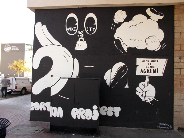 Positive messages in the mural, which includes images of fighting, a knife and brass knuckles, include Ego is not Your Amigo, Better is Possible, Regulate Impulses, and Hood Must be Born Again!