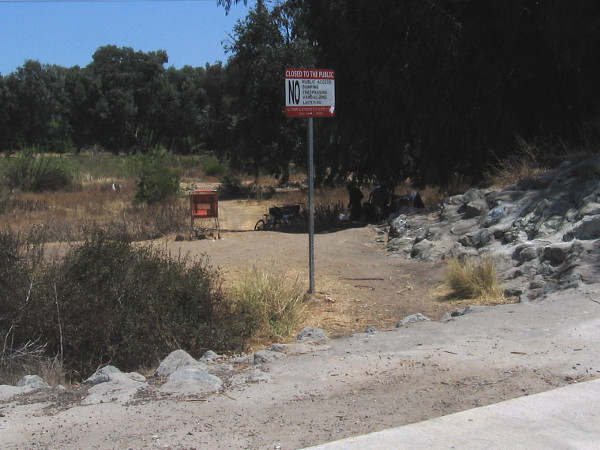 During the day bicyclists and runners passed me by as I slowly walked, and the nearby busy westbound lanes of U.S. Route 54 sometimes came into view. But late at night, the scene is obviously very different. There was graffiti which increased as I progressed east to Interstate 805. There was trash and frequent evidence of homelessness. As I came into the vicinity of Interstate 805, I passed several active homeless encampments. And the graffiti spoke of gang activity, with references to drugs and death.