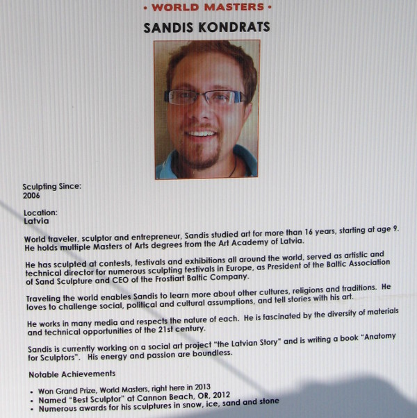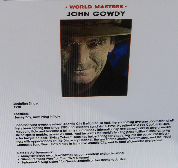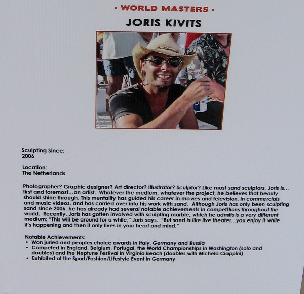 I didn’t know it at the time, but I learned with a little research that I had spoken with Chris Guinto, of Key West, Florida, a world class sand sculptor who has starred in several acclaimed television shows! His work has been a central feature of ‘Sand Masters’, ‘Sand Wars’ and ‘Sand Blasters’ on the Travel and Discovery Channels! All I can say is he was super friendly and very cool!