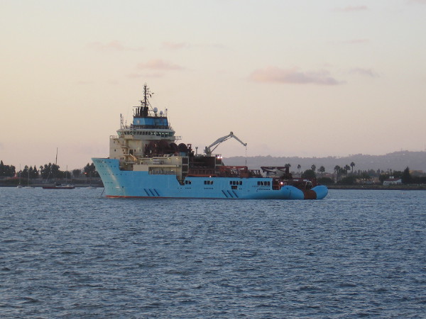 The Maersk Launcher at anchor in San Diego Bay.