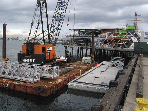 I walked along downtown’s waterfront today, wondering what I might see. A cruise ship was docked at the Broadway Pier, but I saw no passengers. I noticed that the Portside Pier construction is well along. It’s Sunday, so lots of volunteers were busy at the Maritime Museum, but I was one of very few visitors. The usual lines at the USS Midway ticket booth were practically nonexistent.