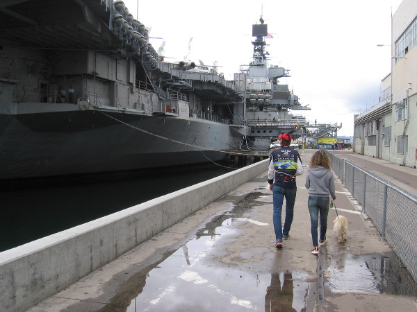 After the harbor tour, I headed south along the Embarcadero’s boardwalk. Here I am approaching the USS Midway Museum…