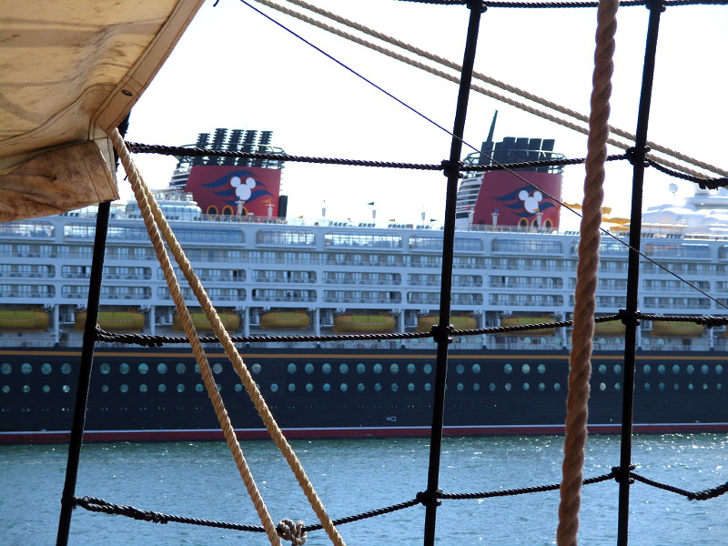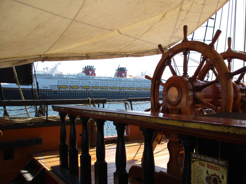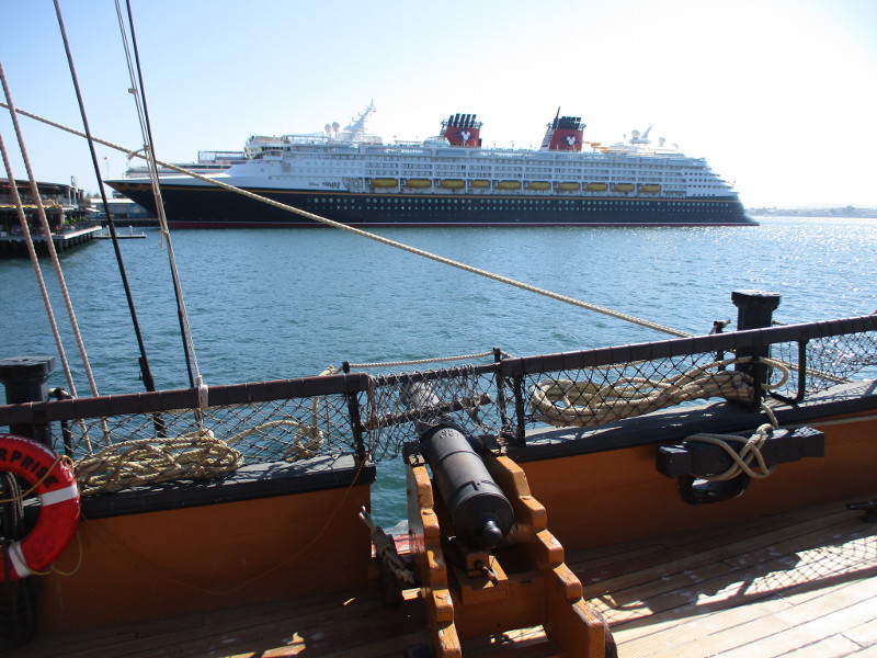 Some passengers who embark on a cruise aboard the Disney Wonder don’t realize there’s another “Disney ship” that makes San Diego its homeport. And it’s docked just a stone’s throw (or cannon shot) away!