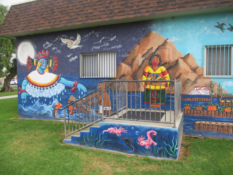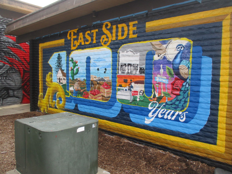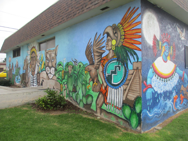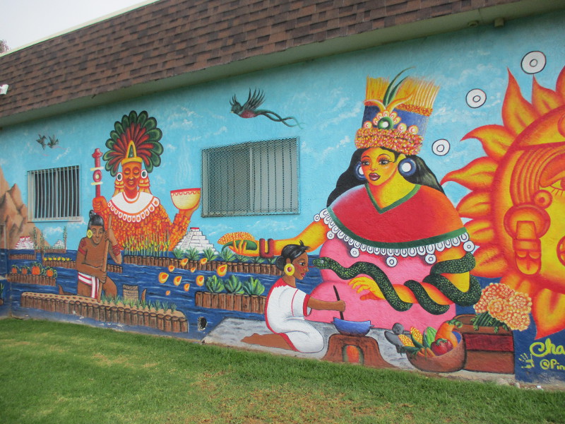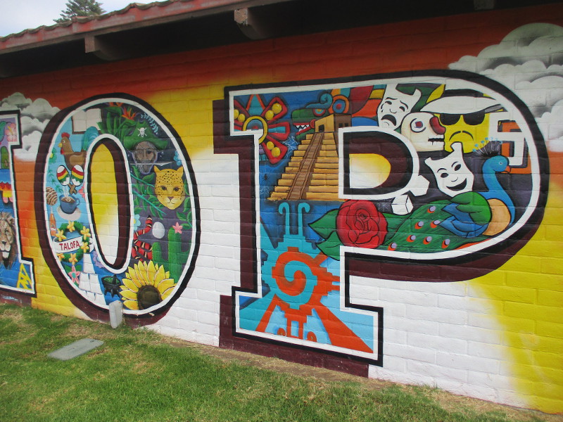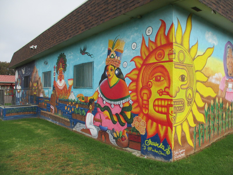The Green Corridor Holiday event brought families together for music, tasty food, arts and crafts, a toy distribution, a tree giveaway, fun with Santa Claus and the Grinch, and Azteca dancing (which I unfortunately missed). I did notice an artist was painting one of the freeway pillars.