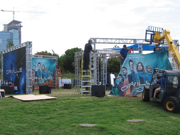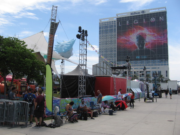 The fun activation is still under construction in Gaslamp Square this Tuesday afternoon, a day before Comic-Con Preview Night. Open to the public beginning Thursday, visitors will see whether they are selected by one of the Greek gods.