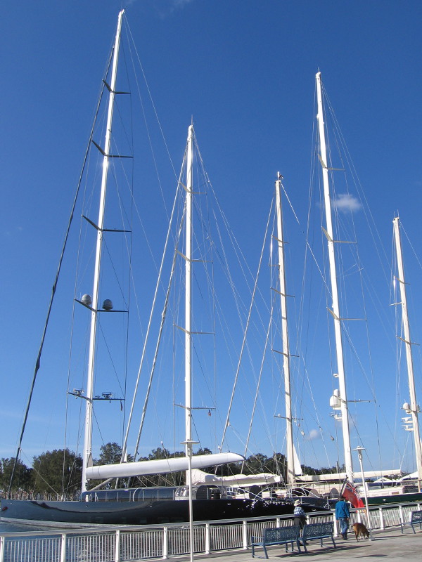 Two superyachts behind the convention center have really, really, REALLY high masts!