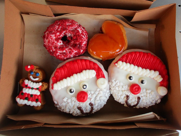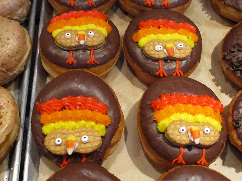 Just in case the roast turkey, stuffing, gravy, mashed potatoes, rolls, candied yams, green bean casserole, cranberries and pumpkin pie isn’t enough to send you into a blissful post-feast coma, have a turkey donut! (I swung by the downtown Donut Bar a couple days ago.)