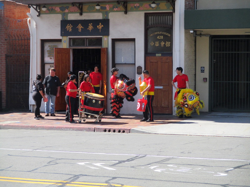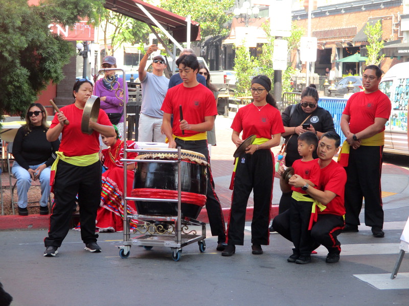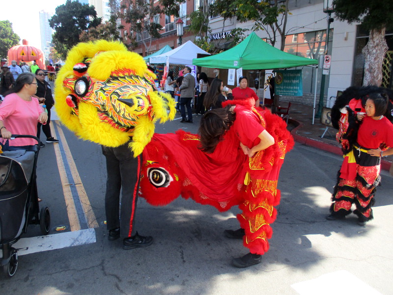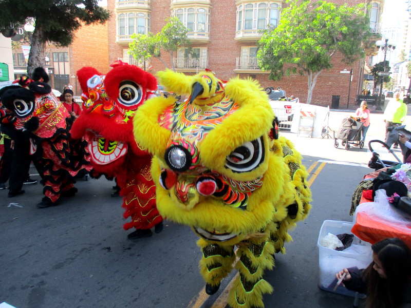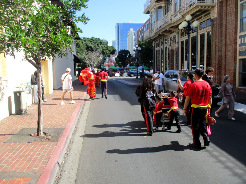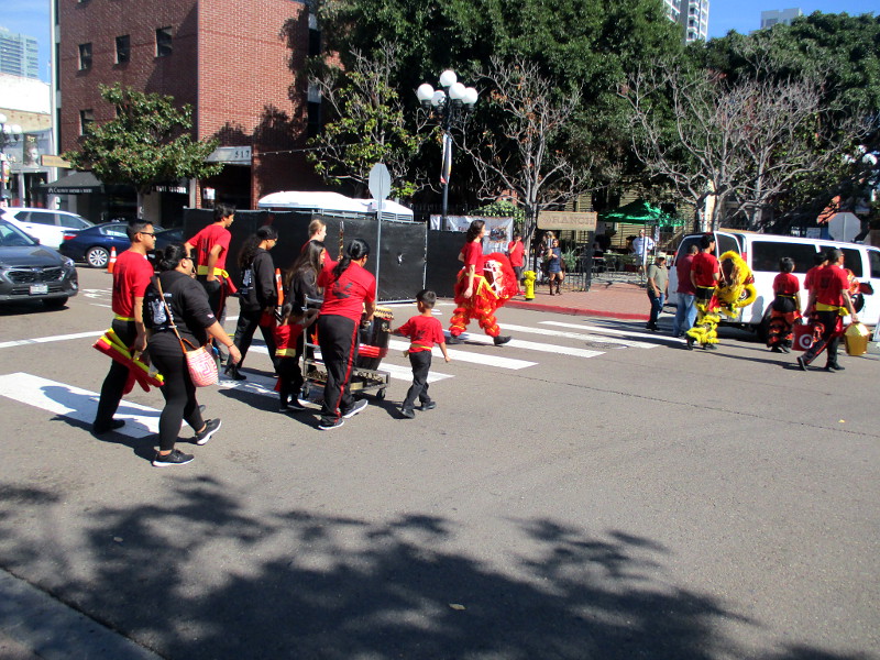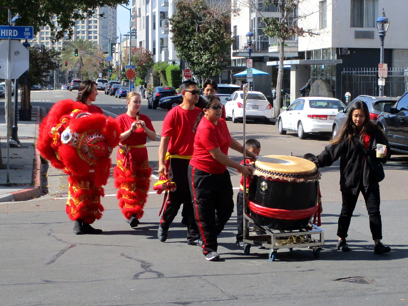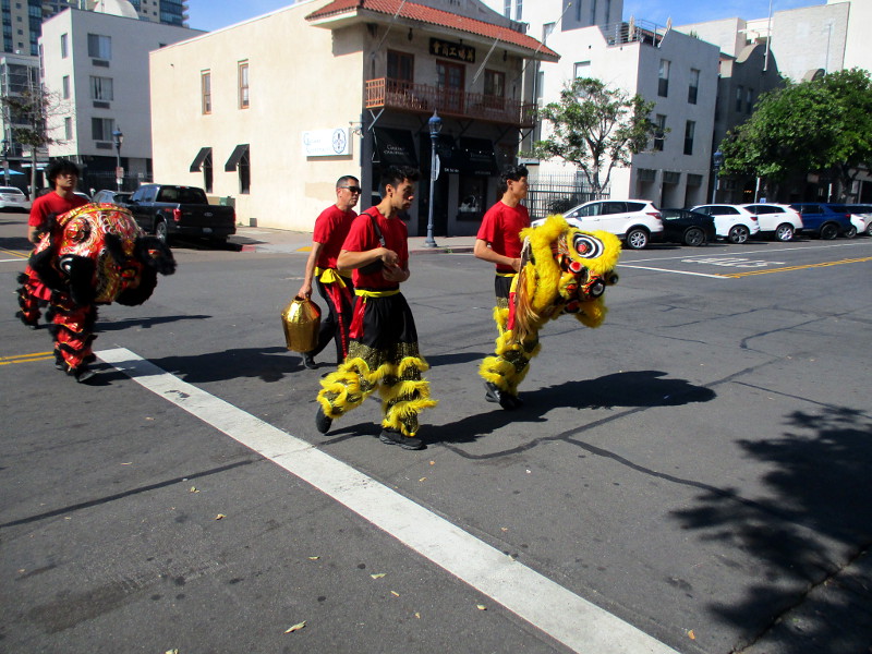 Shortly before noon, the dancers departed their headquarters at the San Diego Chinese Consolidated Benevolent Association, crossed Third and Fourth Avenue, and entered the festival with traditional costumes and musical instruments.