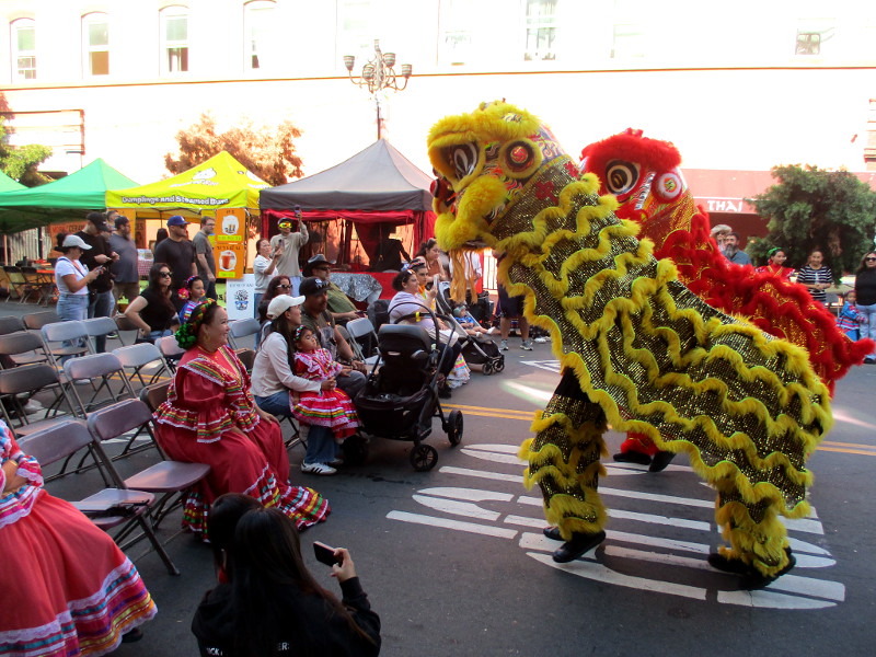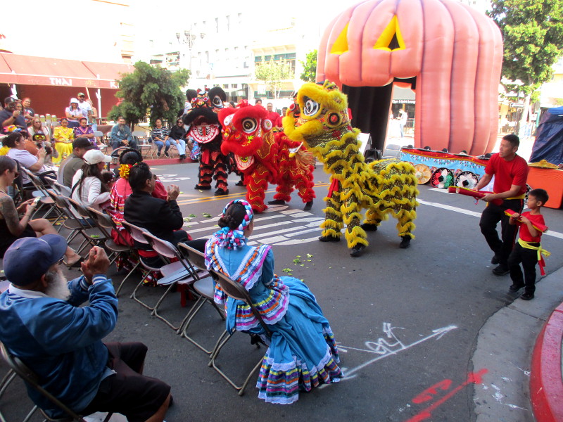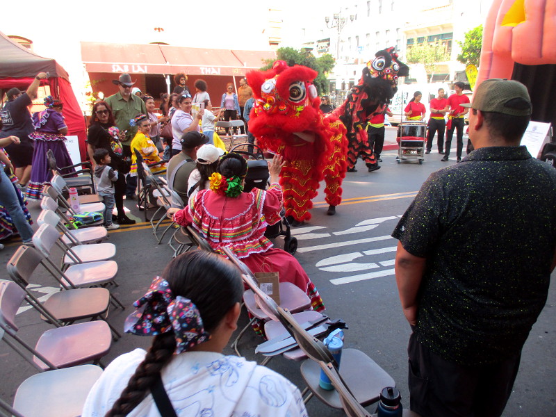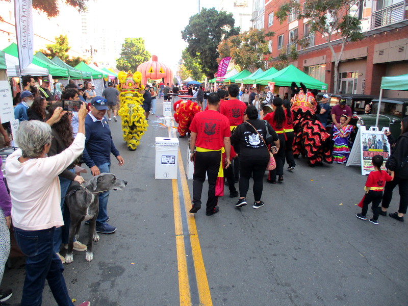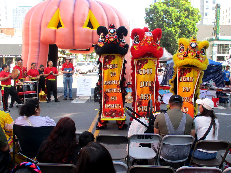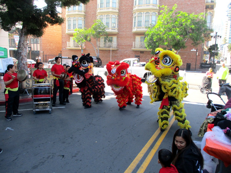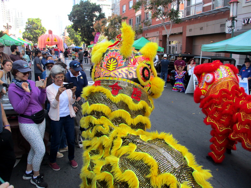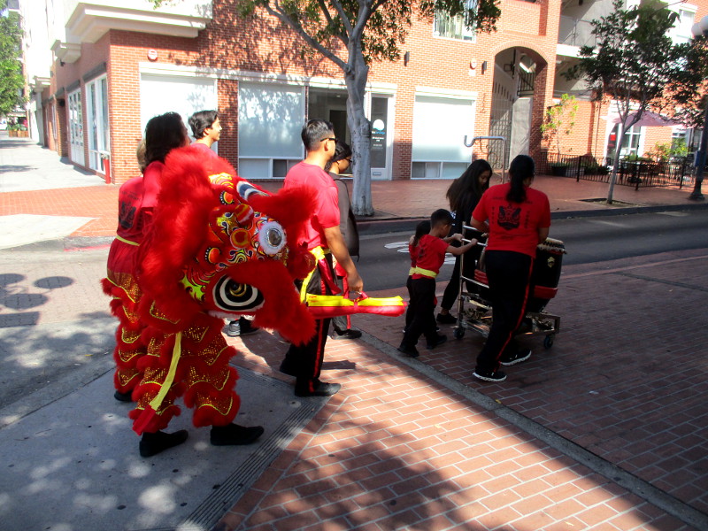 Shortly before noon, the dancers departed their headquarters at the San Diego Chinese Consolidated Benevolent Association, crossed Third and Fourth Avenue, and entered the festival with traditional costumes and musical instruments.