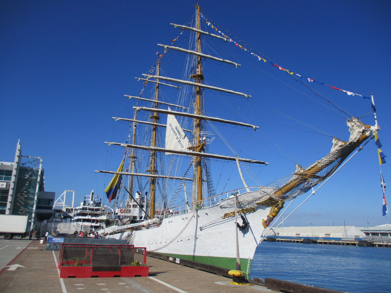 The large three-masted barque is used by the Colombian Navy as a cadet training ship. It’s also the flagship of the Colombian Navy and floating goodwill ambassador. It’s currently on a tour of the west coast of North America.