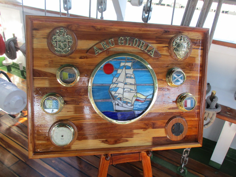 The figurehead of the ARC Gloria is a gilded, winged angel named María Salud. This figurehead is a tribute to the daughter of the sculptor who created it, Victor Gutiérrez Jiménez.