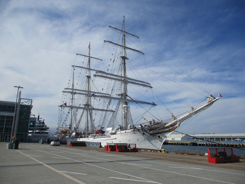 Why is the three-masted barque, based in Bergen, Norway, tied up to Broadway Pier? The Statsraad Lehmkuhl is on a 12-month global voyage as ambassador for the UN Ocean Decade. Its One Ocean Expedition includes sail training, ocean science, education and diplomacy to inspire action for a sustainable ocean.