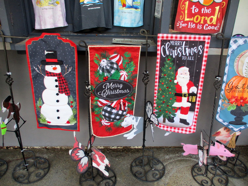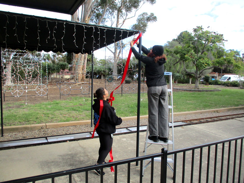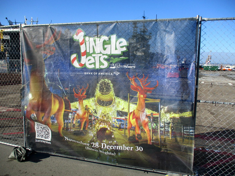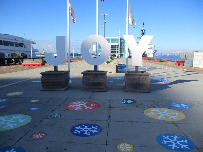 JOY has returned to the Broadway Pier.Jingle Jets begins on the flight deck of the USS Midway on November 28.Seaport Village is decked out for the holidays.Alamo Flags is ready for Thanksgiving and Christmas.Holiday programming is coming up at the Rady Shell, including Noel Noel.Happy Holidays and Season’s Greetings banners in the Gaslamp Quarter.Santa Claus is riding a motorcycle at the Hard Rock Hotel.Mannequin in Gaslamp shop is dressed for a Christmas party.Museum of Illusions has a Christmas tree and fun North Pole photo op!Santa and reindeer are practicing landings in Balboa Park.Celebrate the holidays with local artists at Balboa Park’s Spanish Village.The San Diego Civic Youth Ballet will perform The Nutcracker in December.Getting the Balboa Park Miniature Railroad ready for the holidays!