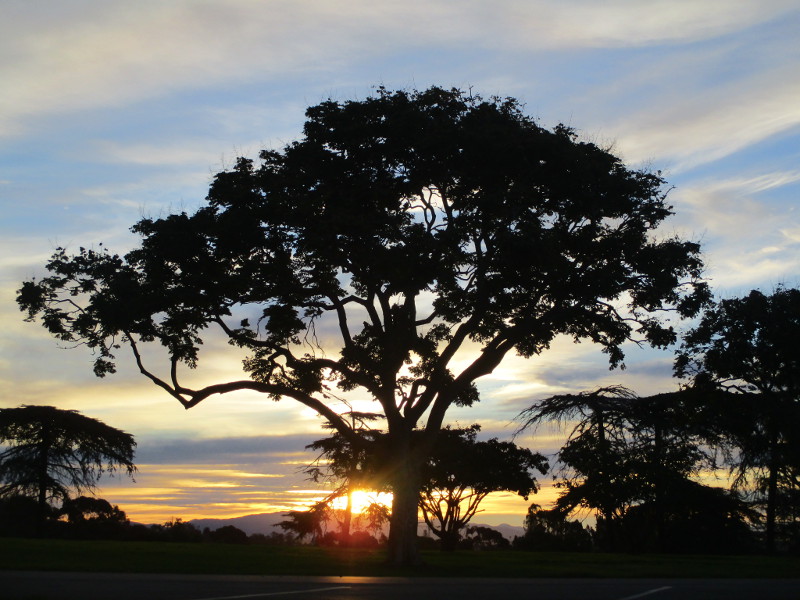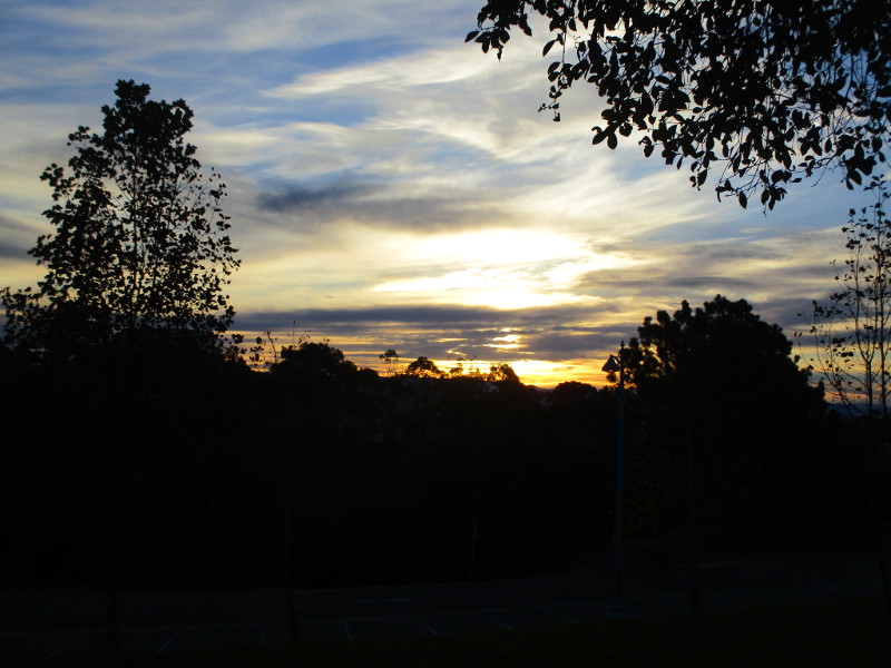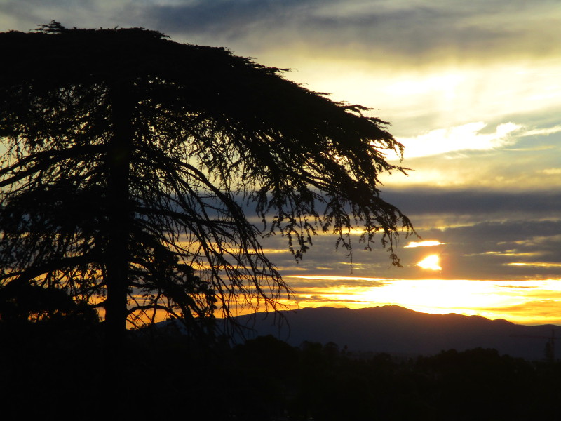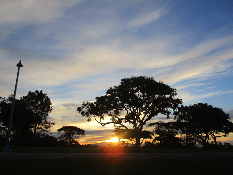 Marston Point lies at the southwest corner of Balboa Park, at the south end of the West Mesa. When there are low broken clouds to the east, the sun rising beyond the trees and distant mountains can be very dramatic.