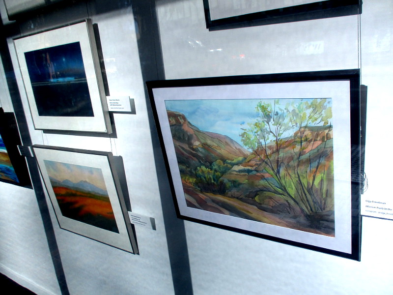 The displayed art is primarily beautiful paintings. Beaches to canyons to foothills to mountains to the desert beyond them, the depicted region is immense. These varied landscapes support what is said to be the greatest biodiversity in the United States.
