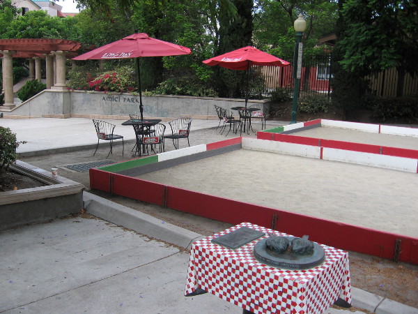 People love to congregate in Little Italy’s Amici Park, just north of downtown San Diego. There’s a big grassy area for dogs, a couple bocce ball courts, and some tables and chairs where neighbors can just sit and relax. Or eat.