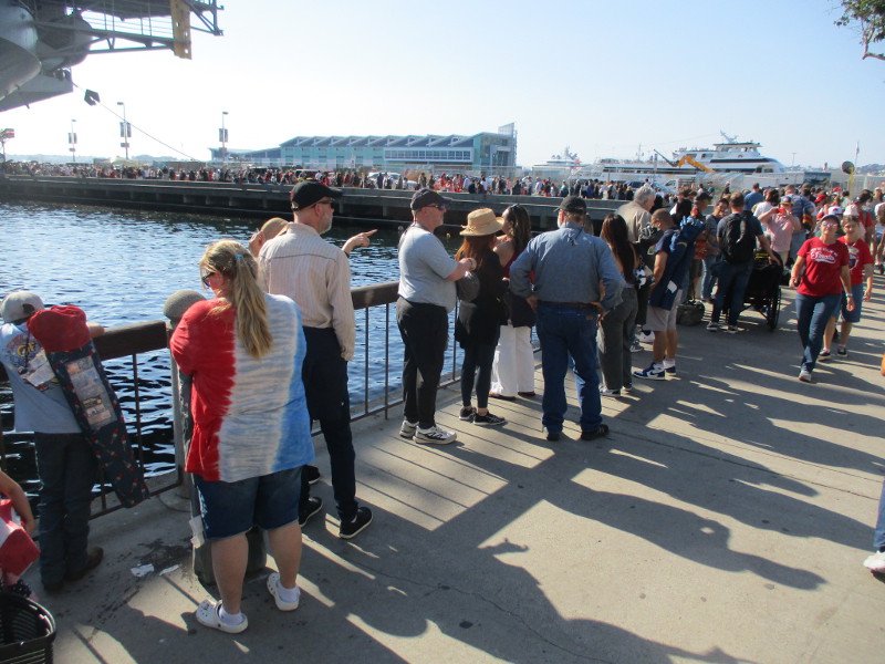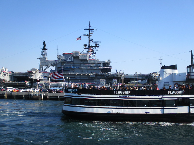 After the harbor tour, I headed south along the Embarcadero’s boardwalk. Here I am approaching the USS Midway Museum…