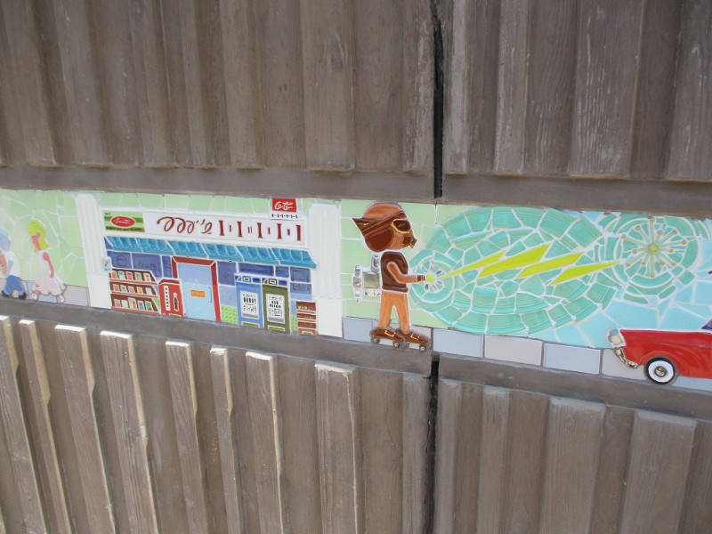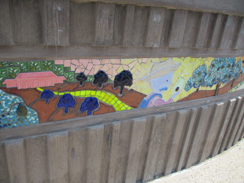 This excellent article about the project explains how it aims to tell the storied and colorful history of the city and its residents, was a collaborative effort between students from Paul Ecke Central Elementary School and San Dieguito Academy, nonprofit art studio Campana Studios and SDA art teacher Jeremy Wright.