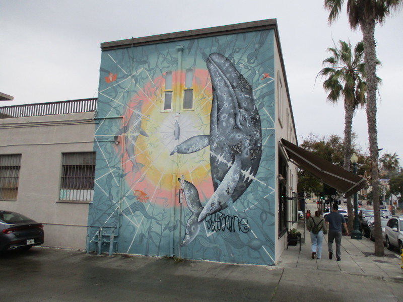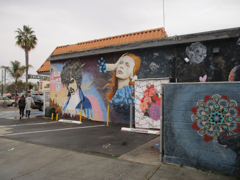 I photographed these 3′ by 5′ mosaic panels the other day during my walk in Encinitas. The joyful images reflect themes that are popular in this beach community. The ocean, nature, sunsets, people, surfing, pets, skateboarding, sunshine, history, places…