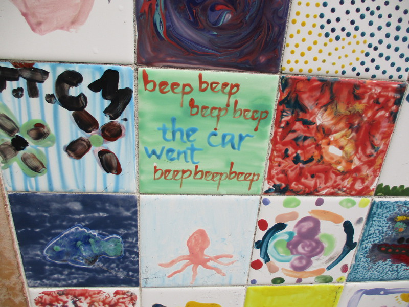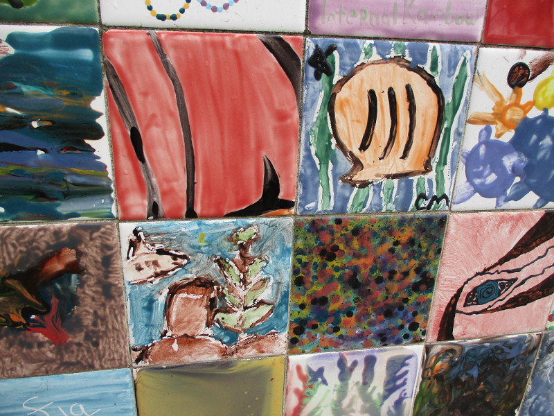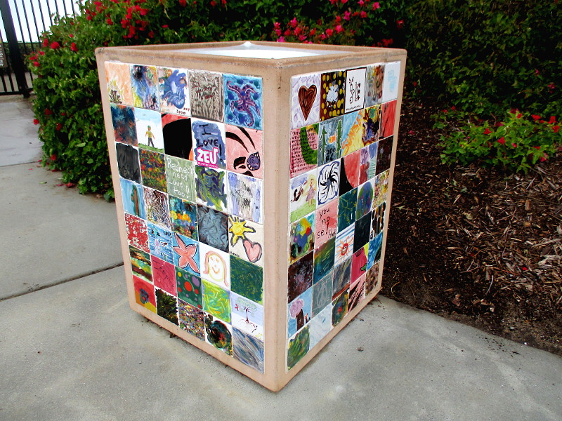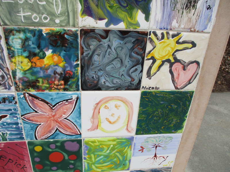 In Encinitas, incredibly beautiful public art decorates the underpass of Interstate 5 at Santa Fe Drive. The project is called Encinitas Up Close. Fifty three colorful mosaics, created by local students and professional artists, greet those who pass under the freeway.