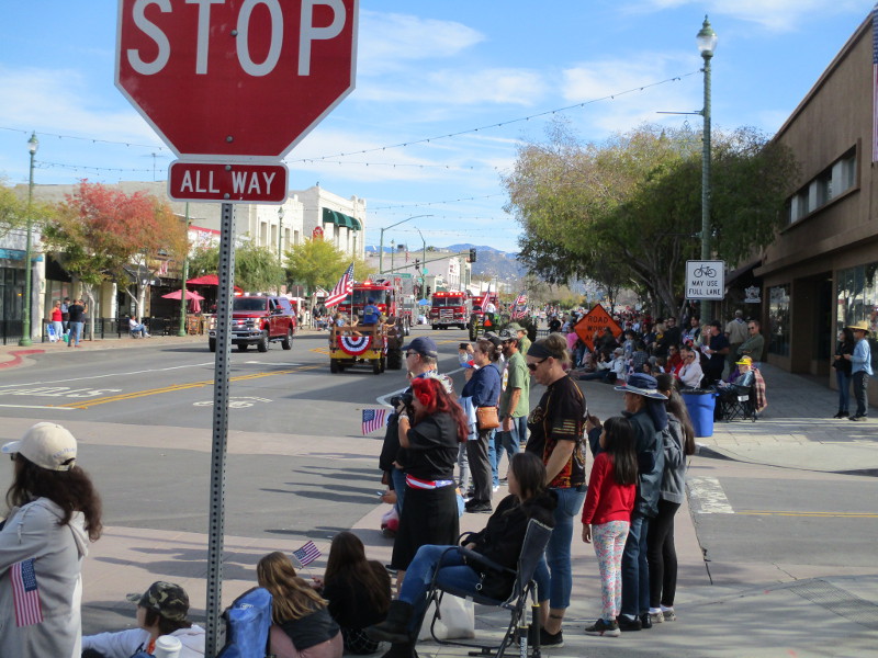 Marching bands, vintage cars, equestrian groups, dancers, fire engines, and smiling people of all ages, many of whom were Veterans, paraded down Grand Avenue. Then each group turned around and paraded on back! Which created a unique “double” parade, as you’ll see in some of the upcoming photographs!