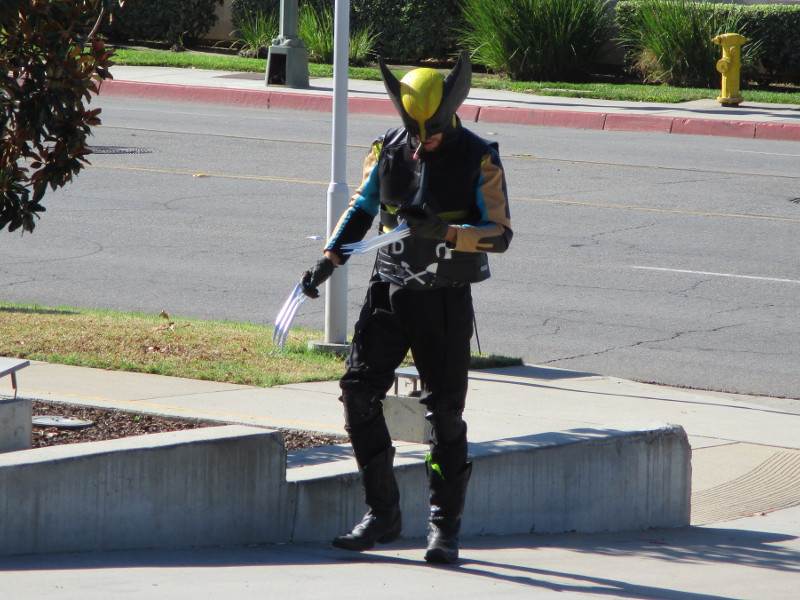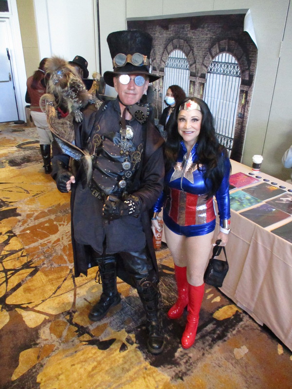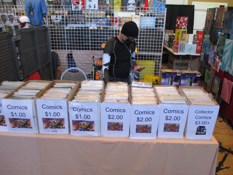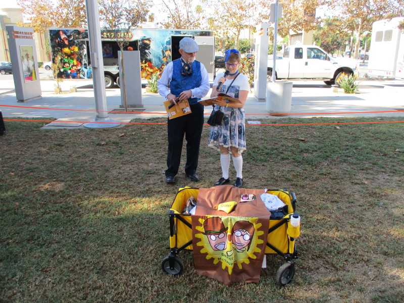 Cosplayers wearing Mandalorian armor pose in front of the California Center for the Arts, Escondido Conference Center.Hulk welcomes visitors at the Science Fiction Coalition table. I think he just arrived from Planet Hulk.Oh, man! Look at all this super cool nerdy stuff!Many local Star Wars groups were present, including the 501st Legion.R2-D2 and friend were created by Droid Builders. Author Janet Racciato has written novels for different age groups. Her heroine Julie grew up in Oceanside and can teleport. She told me writing comes easily to her.Dr. Artemus Peepers and Wonder Woman pose for a cosplay photo.Look at all the cool pop culture patches at one vendor table. What’s Yoda doing over there on the right?And check this out! All these awesome creations are from the Gears & Roebuck Rusty Junk Emporium.Star Wars Corn Flakes and Godzilla!And here’s an angry Lord Vader himself! No, I didn’t call you corny or a flake! That box contains cereal!The happy Addams Family.Future artist Gavin Richter. Future? More like present!Young artist Zeke of Swirl Waffle at work.Lots of comic books, naturally. But it’s hard not to look at a phone.Whoa! Ultra-cool helmet by CostumeBiz!Now it looks like I’m in trouble!Ian and Arielle discuss cosplay in the Large Panel Room.Miss Ellie Honeybee posed for a cool cosplay photograph!David L. Drake and Katherine L. Morse, San Diego-based authors of The Adventures of Drake and McTrowell, read their book.Gamora and Star Lord are outside by a face painter!Cars from the animated movie Cars! They were brought to Fandom Invasion by Dr. Justin Wu, of the Healing Little Heroes Foundation.Cosplay everywhere!Even Hawkman showed up in Escondido, all the way from the planet Thanagar.It seems Wolverine was a bit late, however.