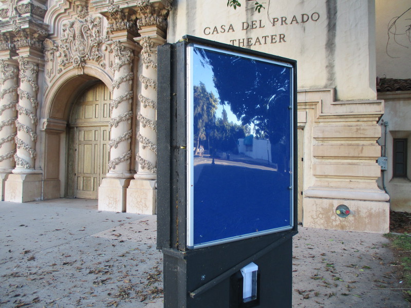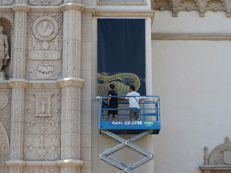 A new exhibition of Korean art is coming to the San Diego Museum of Art.One end of the Botanical Building’s steel structure has been renovated.New love, perhaps?Inflating the huge screen at the Spreckels Organ Pavilion for Silent Movie Night.What’s coming next at the Casa Del Prado Theater?Painting patio tiles at Spanish Village Art Center.Flowers fall away as new flowers appear..Walking into the light through one wonderful park.