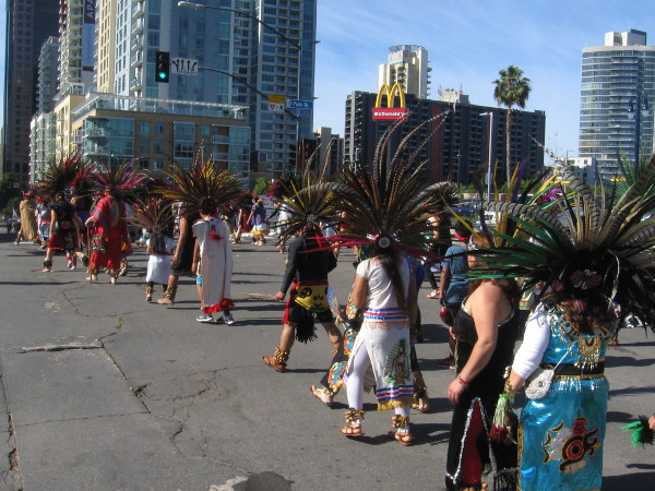 I saw colorful Aztec dancers, and black-garbed priests, and the Bishop of the Diocese of San Diego, and smiling queens, and joyous mariachis and baile folklórico dancers.