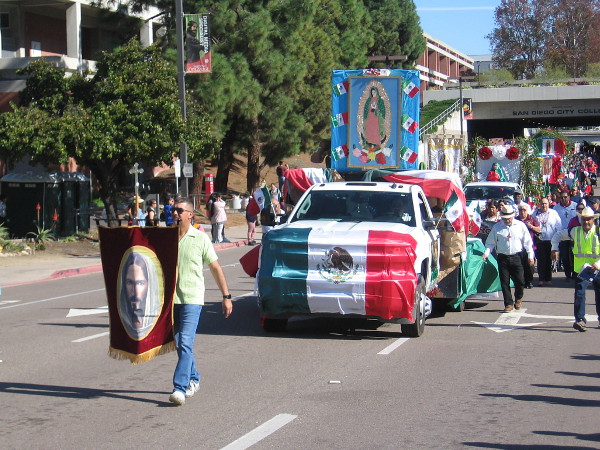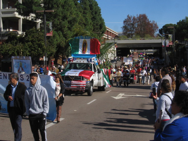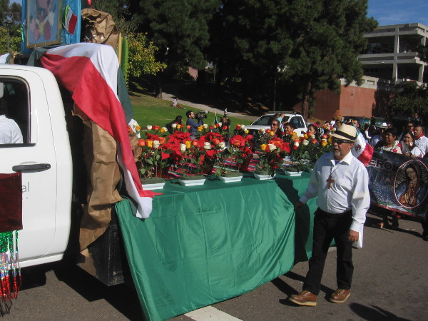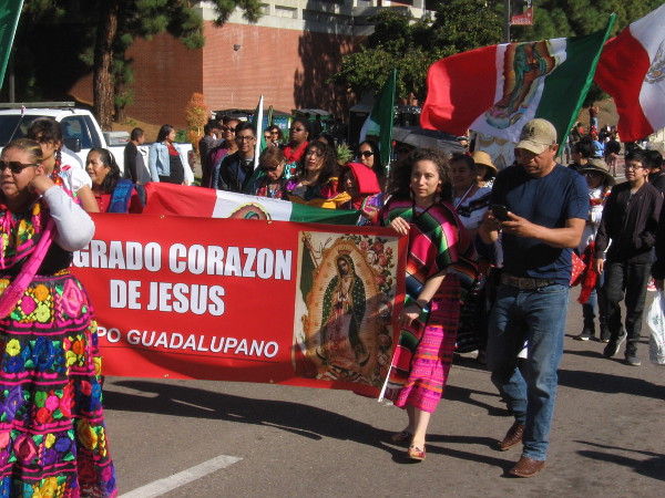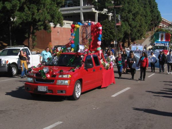 Members of Catholic churches across San Diego County and beyond walked behind the parish floats, singing and rejoicing and holding banners, celebrating the miracle appearance of the Virgin Mary, Our Lady of Guadalupe, all those years ago outside Mexico City.