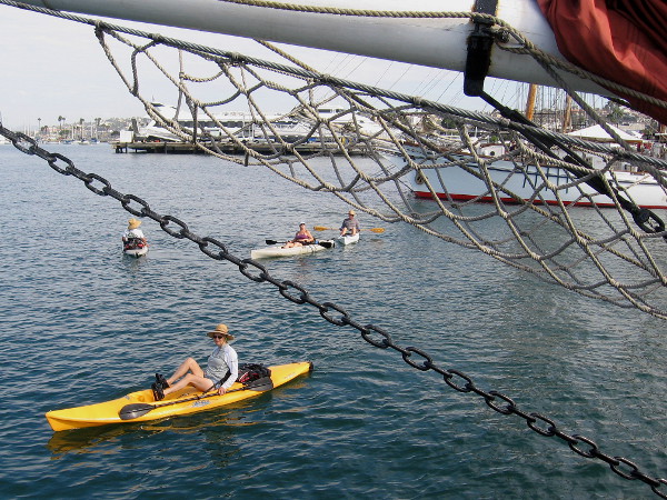 The Spirit of Dana Point, a replica of an American Revolution privateer ship, heads out into San Diego Bay.People on kayaks enjoy the seafaring festival. Many visiting tall ships have converged in San Diego for the Labor Day weekend.Someone walks along near the Norwegian double ended ketch Cloudia.People at the Festival of Sail check out America, a somewhat enlarged replica of the victorious 1850 schooner for which America’s Cup was named.Beautiful tall ships everywhere one looks!Kayakers head toward the Exy and Irving Johnson at the end of another floating dock.Many people were boarding the San Salvador, one of the many amazing vessels belonging to the Maritime Museum of San Diego.A museum employee talks about how the Spanish galleon replica was built at Spanish Landing. You might recall I blogged about its construction.Oh, noooo! Here comes Mister Mac! That despicable pirate seems to be unstoppable!Some music could be enjoyed on the Berkeley’s beautiful passenger deck.People watch as the Irving Johnson heads out to face the Spirit of Dana Point in a cannon battle on San Diego Bay.Friendly crew member of the Exy Johnson of the Los Angeles Maritime Institute was greeting those passing by.A photo on the deck of Exy Johnson, a beautiful brigantine used in the Los Angeles Maritime Institute’s TopSail Youth Program.Another perfect day at the Festival of Sail. I could linger all day.Like a vision from the past, two glorious tall ships maneuver on blue San Diego Bay.