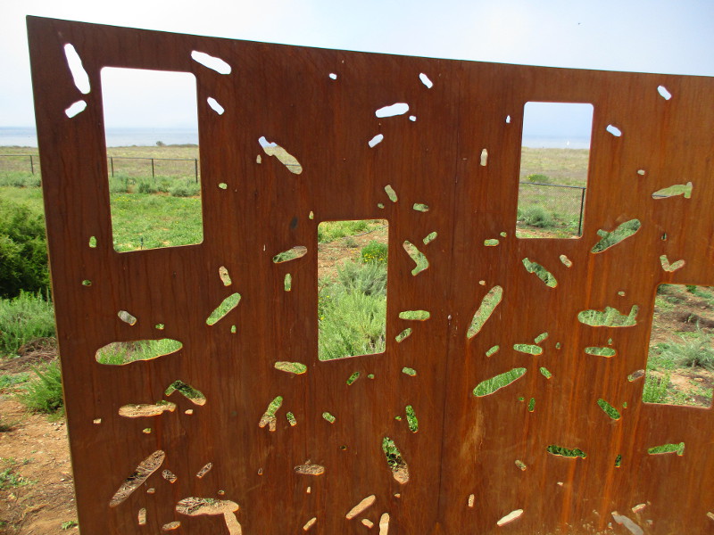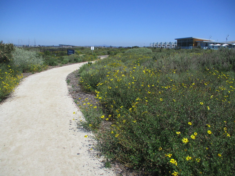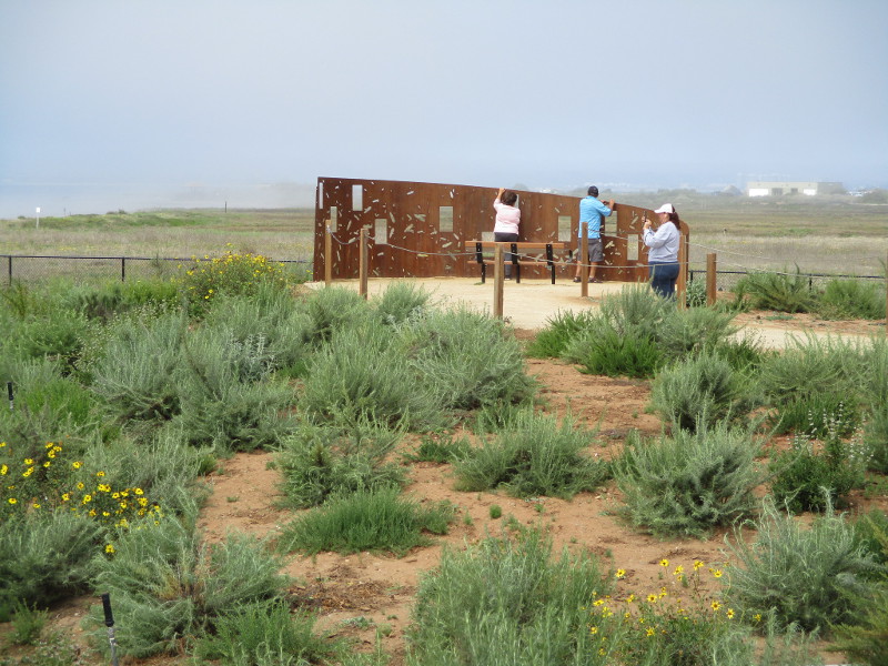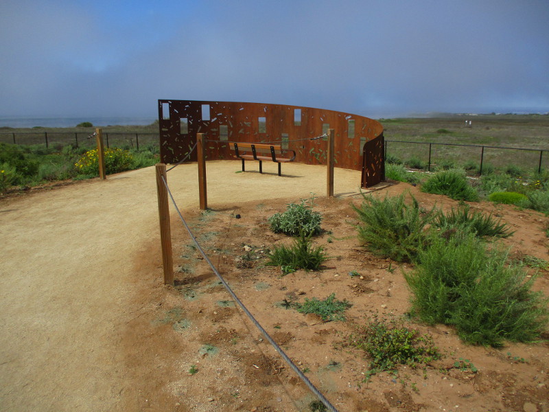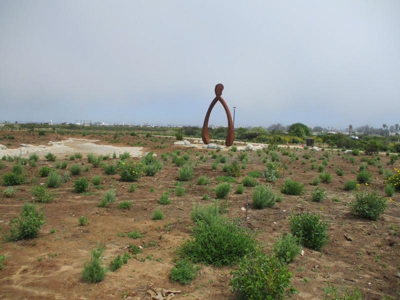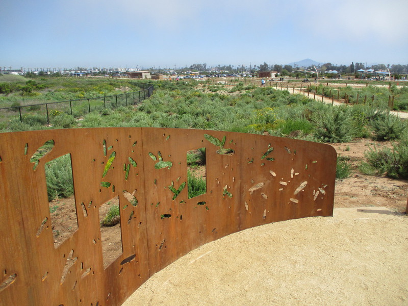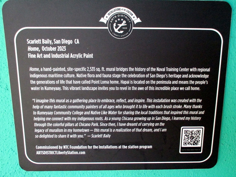 According to a nearby plaque, it bridges the history of the Naval Training Center with regional indigenous maritime culture. Native flora and fauna stage the celebration of San Diego’s heritage and acknowledge the generations that have called Point Loma home…