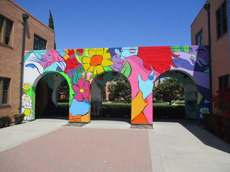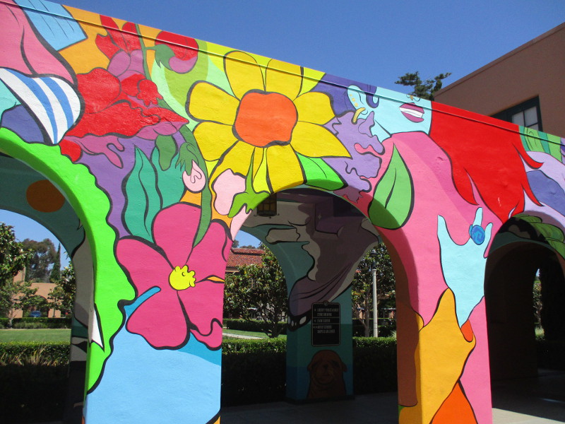 How can you not love this colorful mural at Point Loma’s Liberty Station? It was created in 2023 for the arched passage between Barracks 14 and 15.