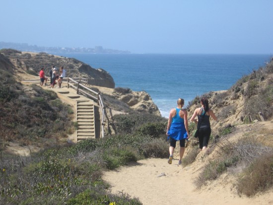Hiking to the beach from a trailhead in Torrey Pines State Reserve.