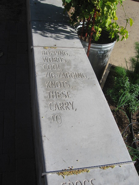 The Martin Luther King Jr. Promenade runs along a portion of Harbor Drive, and it passes San Diego’s fun New Children’s Museum. In addition to a playground right next to the pathway, there’s a very small urban garden. The museum’s Garden Project is a demonstration area that allows children to explore a few plants and the basics of gardening. Some art is incorporated into the space, and a surprising poem!