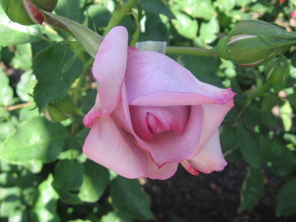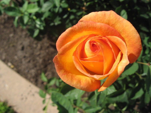 Spring is only a few days old and flowers are blooming everywhere. The gardens in Balboa Park are fairly exploding with dazzling color. This weekend my feet directed me through the bright, sprawling rose garden along Park Boulevard. Using my camera’s macro setting, I took some close up photographs that you might enjoy! The rose variety is shown in each caption.