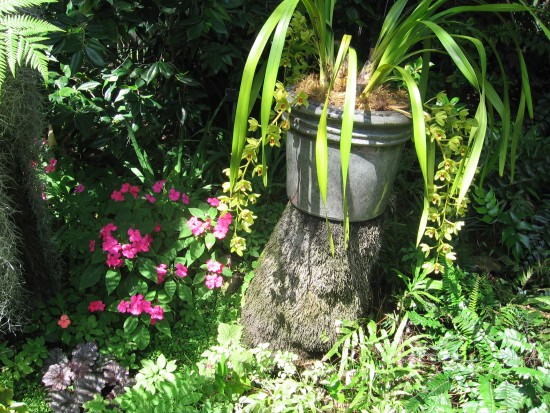 My favorite garden of all grows in the Botanical Building. Stroll down El Prado and you’ll see an imposing wood lath building at the opposite end of the reflecting pool. That’s the Botanical Building.