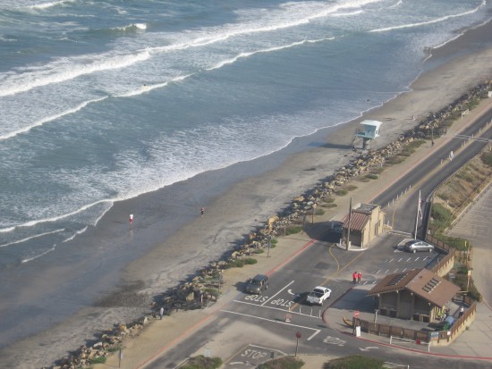 Now we’re heading south along the edge of the cliff. Torrey Pines State Beach is far below. When it’s possible to spy beach-goers, they’re very tiny!