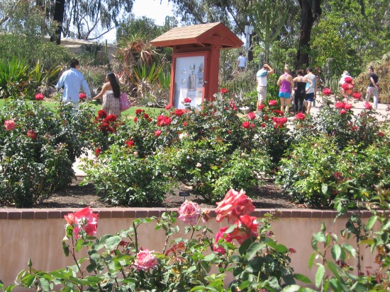 I took these photos today at Balboa Park’s three-acre Inez Grant Parker Memorial Rose Garden. It’s located across Park Boulevard from the Reuben H. Fleet Science Center, and features about 1,600 roses of more than 130 varieties. People love to stroll through the lush award-winning displays. Many mothers and families were present today!
