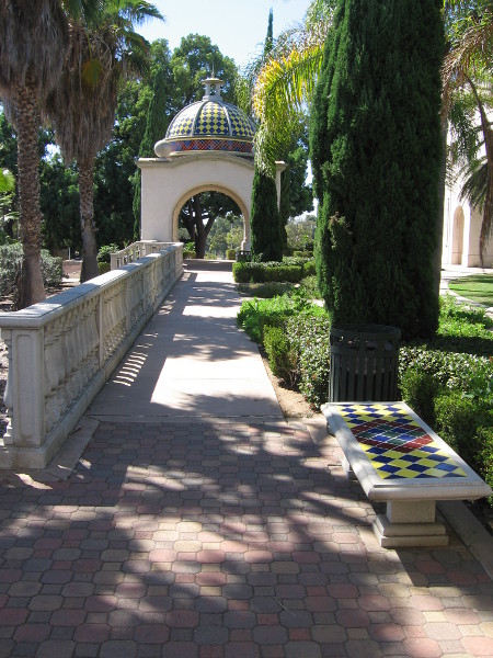 After a bit of research, I learned this beautiful and seldom-visited area is called the Balboa Park Administrative Courtyard. One website calls it a San Diego hidden gem, and I must concur. The place was stunningly beautiful–and completely empty. Nobody was present. Not a soul. On this warm Saturday, the rest of Balboa Park was crowded with people.
