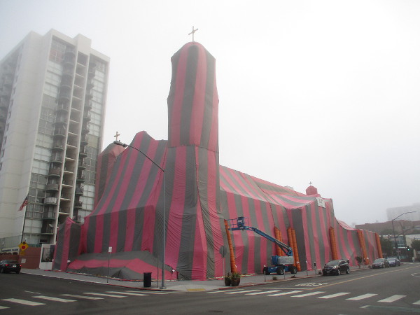 I haven’t captioned these photos. I like how the fog provides a sense of mystery. But you might notice construction continues on the San Diego Symphony’s new outdoor summer concert venue, The Shell.