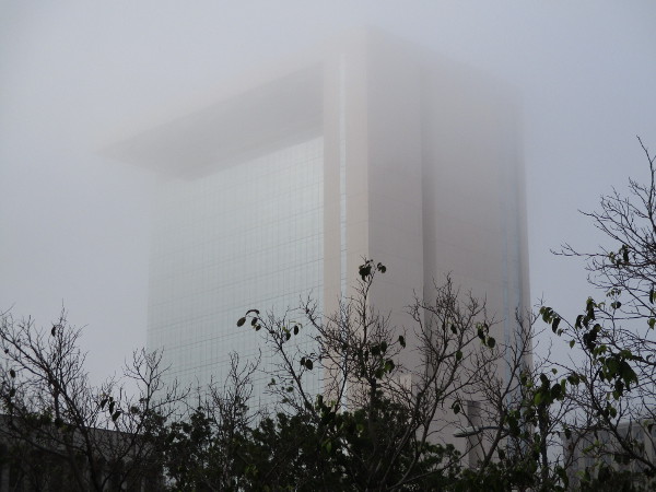 The sun, clearing the horizon somewhere behind downtown’s high buildings, magically turned the fog orange. Then the gray creeping fog made those buildings vanish.