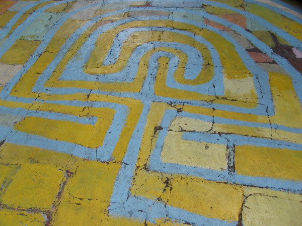 I learned the yellow in this labyrinth was recently painted. Now the once elusive design really stands out. You’ll find it in front of Studio 13. Many curious kids (and some adults) like to journey down this curving path!