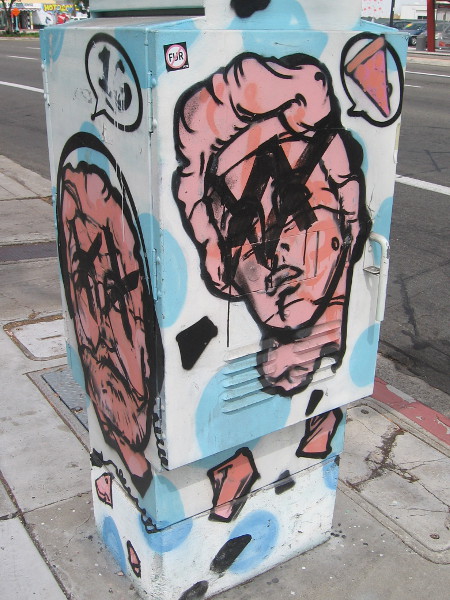 A funky face has been spray painted on a utility box on El Cajon Boulevard in City Heights.