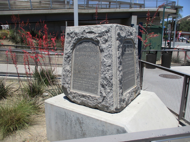 Two historical markers can be seen just north of the San Ysidro Port of Entry border crossing. They stand near the entrance to the pedestrian bridge that crosses over Interstate 5 to Camino de la Plaza. I spotted them during my last walk around San Ysidro and took photographs.