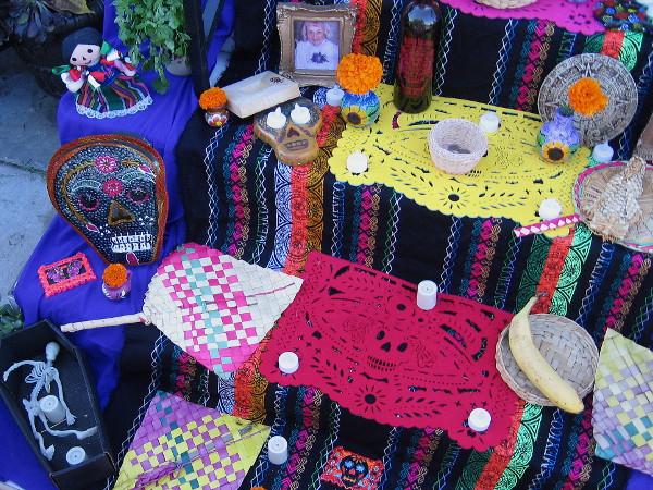 A traditional Dia de los Muertos altar in Sherman Heights summons ancestors and loved ones who have passed from this world.