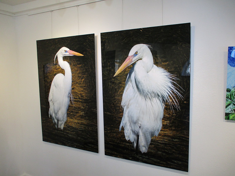 After checking out his fantastic images of birds, turtles and other marine life, I paused to learn about his art. The high quality digital art is printed on aluminum, and the process creates an uncanny sense of depth. The pieces I observed shine as if light is being reflected from water.