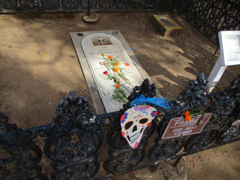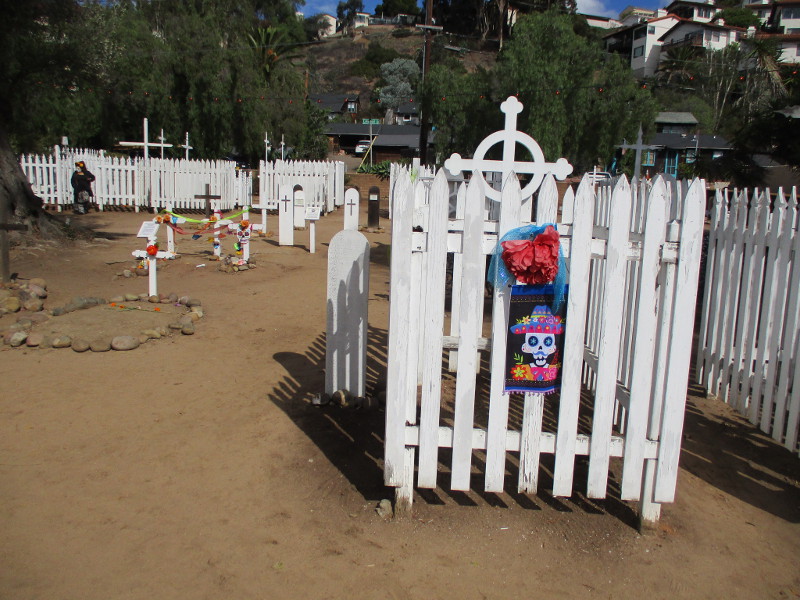 The gravesites at El Campo Santo in Old Town are decorated already. Every early resident of San Diego buried here is remembered with flowers, papel picado, Day of the Dead skulls… Every person here was loved by someone.