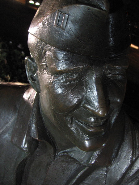 Yesterday evening, after dark, I walked along the Embarcadero. When I arrived at the Greatest Generation Walk, I paused to gaze at the various illuminated memorials and monuments. I was struck at how light reflected from the bronze figures of military heroes, highlighting their expressive faces.