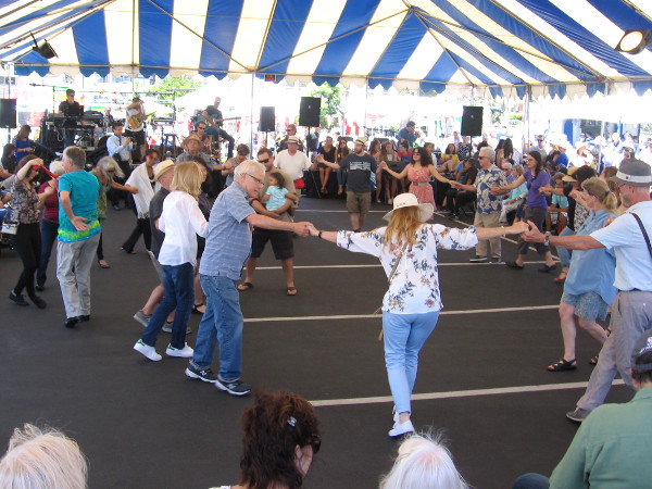 Tables and tents in the parking lot behind the church were overflowing with yummy Greek food, laughter, smiles and good cheer. Under the big tent the music, song and dancing was nonstop. Everyone clapped to lively traditional Greek music as people spontaneously jumped up and joined hands to dance. The spirit of “Opa!” was alive!