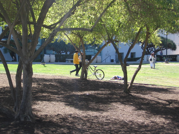 Labor Day was quiet at the International Cottages, which were all closed for the Monday holiday.As I walked behind the Balboa Park Club building, I gazed northwest toward the Cabrillo Bridge and took this photo.On Labor Day, like most days, the 1935 (Old) Cactus Garden in Balboa Park is a quiet place for solitude.Families enjoy Labor Day in front of the San Diego Air and Space Museum.People relax on a bench by the old Mack Water Truck just outside the entrance of the San Diego Automotive Museum.Walking through Pan American Plaza between the San Diego Automotive Museum and nearby Recital Hall.Balboa Park was the ideal place for a picnic this Labor Day.Young and old enjoy the famous beauty of Balboa Park’s lily pond.All sorts of people were out on the grass enjoying the May S. Marcy Sculpture Garden at the San Diego Museum of Art.Visitors were touring the iconic California Tower and gazing across Balboa Park, one of the most wonderful places in the world.This group wanted to see fine art so they headed into the San Diego Museum of Art.Some smiling street musicians were setting up on El Prado to entertain passersby.The silly Lärabar Street Team danced for my blog, then I got some yummy samples to eat!Mentalist, hypnotist and super nice guy Ralph Hamrick greets me with his usual smile! I still haven’t recovered from that weird mental trick he performed on me.Street magician Kenny Shelton delights some young people with one of his amazing tricks.Lots of people were enjoying hula hoops on the grass!The San Diego Blood Bank was saving lives in front of the Museum of Man.A quiet moment on Balboa Park’s broad, green West Mesa.This squirrel didn’t know today was a holiday. It was just another day in the park.Even street performers have to eat lunch!